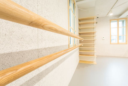 お子様から大人まで、レッスンバーもご利用いただけます。壁に固定のレッスンバーと可動式のレッスンバーがございます。